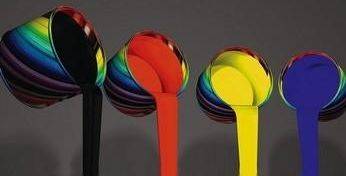 UV油墨在印刷過程中沒有溶劑揮發(fā),固體物質(zhì)100%地留在承印物上,色強(qiáng)度及網(wǎng)點(diǎn)結(jié)構(gòu)基本保持不變,很薄的墨層厚度就可以達(dá)到良好的印刷效果。盡管UV油墨價格比溶劑型油墨高,但是1kgUV油墨可印刷70㎡的印刷品,而1kg溶劑型油墨只能印30㎡的印品。