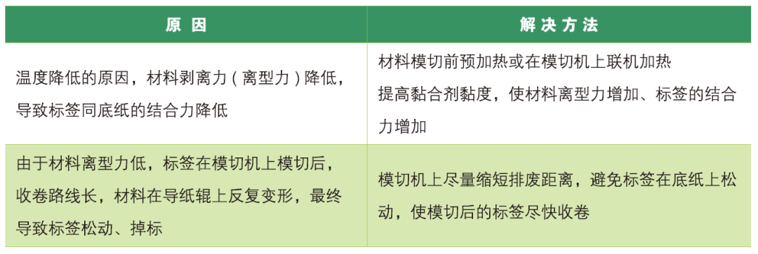 總之,受不干膠材料理化特性的影響,要想模切時降低掉標的發(fā)生概率,一定要嚴格控制模切刀的角度、標簽排廢邊的尺寸以及環(huán)境溫度。只有這樣,在正確調整設備的情況下,才能有效保證不干膠材料的模切質量和生產效率。